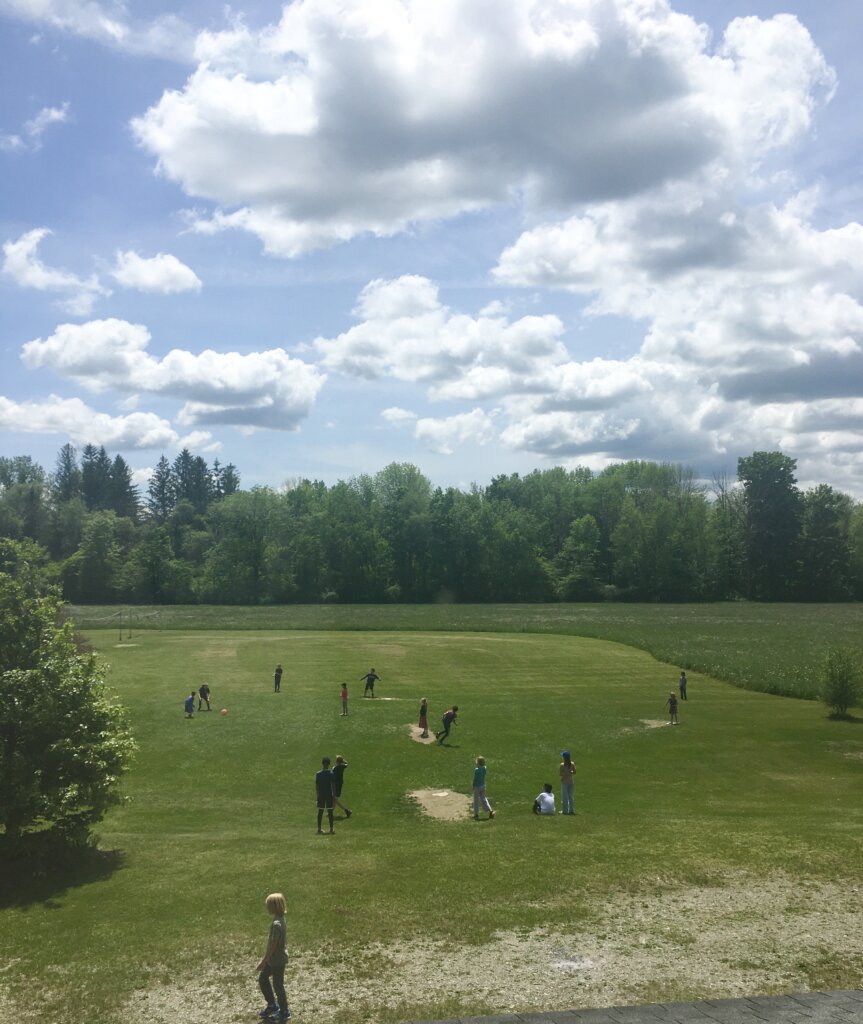 Ms. Cartier also emphasized not taking for granted just how new everything is for students brand new to the Grades School, and how much growth and change is occurring within them. In First Grade, Games period and recesses are organized by Ms. Cartier, while the afternoons are reserved for free play. During free play, the teacher has time to observe social dynamics, and discover students’ different affinities, strengths and joys, when they are free to explore, climb and play whatever calls to them. The strength of the class as a whole shines through during this time.