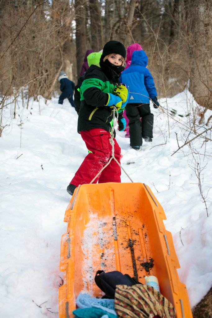 “Speaking of treasured signs of Spring, we will tap a maple tree together as a class this week. We always have so much fun with this, and usually get a decent amount of syrup for the class out of it too! We’ve already been visiting the maple grove. The children love playing there and watching the big kids on their sleds. Maple sugaring has also been the theme of our circle time. “